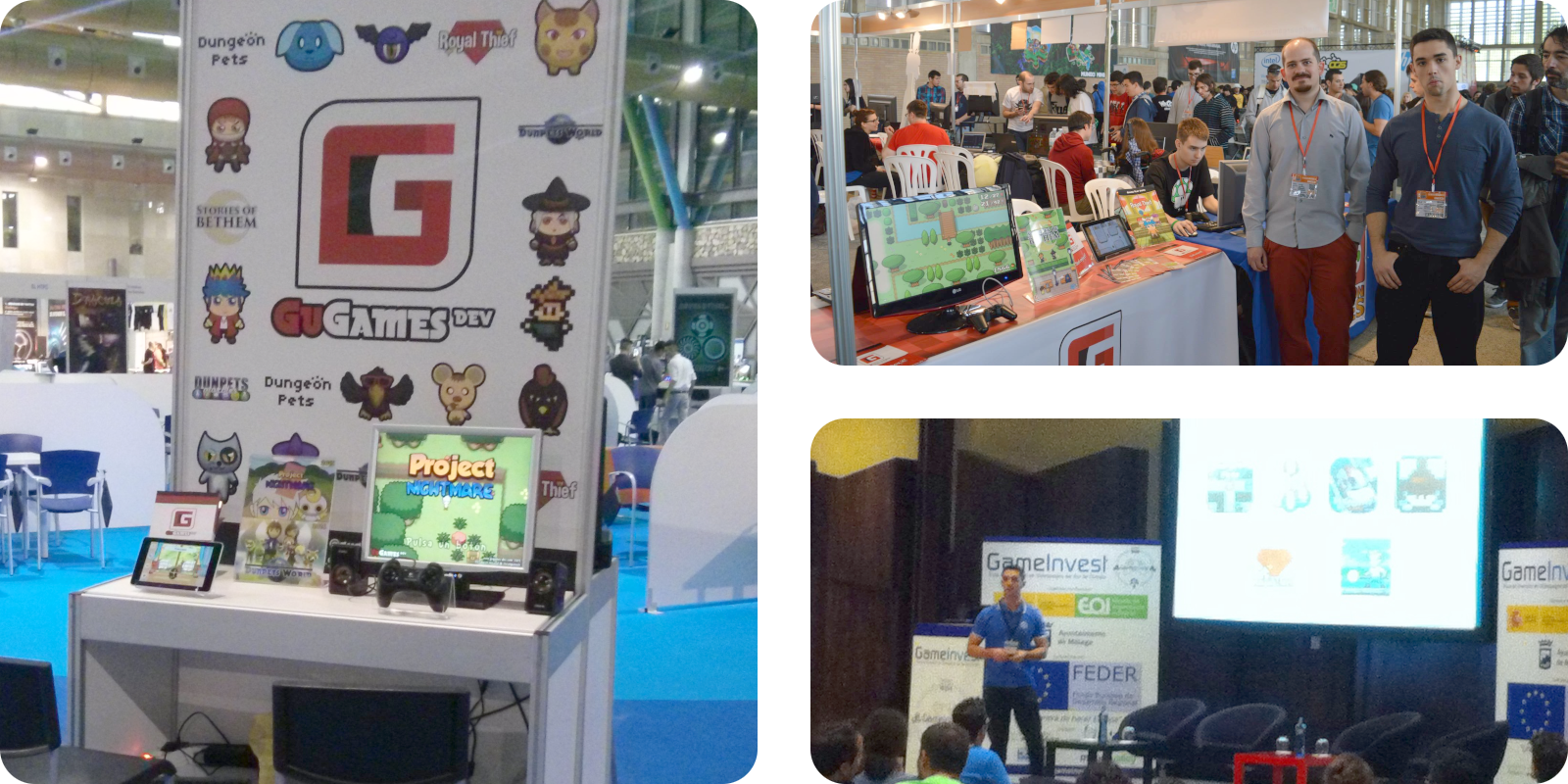 In 2014, GuGames DEV began to take shape: the free video game Dungeon Pets (Dungeonpets saga) gained a significant following and was featured in some media. This led me to participate in several video game fairs in Andalusia, where I met other people in that industry.